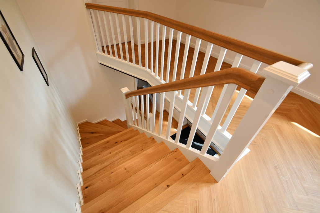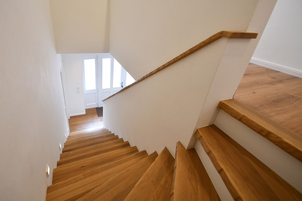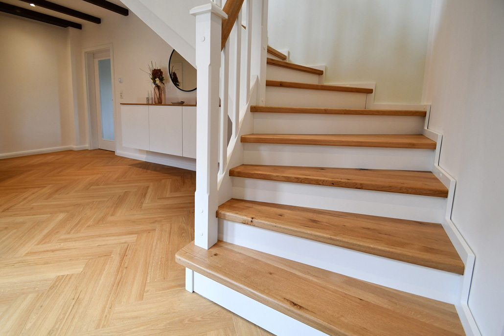 Individuelle Treppen – ob ein- oder zweiläufig, gerade oder gewendelt, Wangen- oder Spindeltreppe – wir planen, fertigen und montieren Ihre Wunschtreppe. Altbau oder Neubau – eine Treppe ist immer auch ein Blickfang und so ein zentraler Bereich einer Immobilie. Gerne beraten wir Sie bei Ihrem Vorhaben – setzen Sie auf unsere Erfahrung im Bereich Treppenbau.